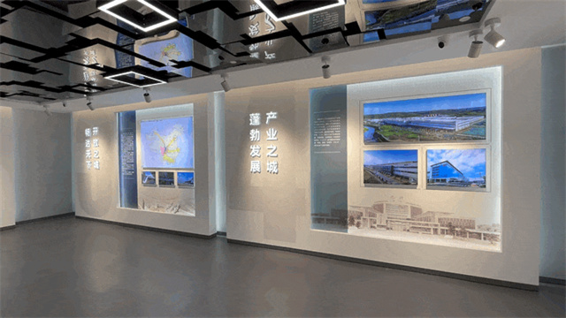 以圖文展板形式對綿陽基本情況進行總體介紹,巧妙利用廊道空間,依次展示綿陽歷史人文、科技創新、產業經濟及生態民生等方面城市發展優勢與近年來的建設成就。
